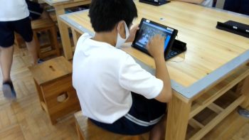 ↓ 定植後の誘引と摘芽の様子をタブレットで記録していきます。