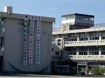 川越中学校からこの夏休みに東海大会に出場する部活動の懸垂幕を昨日8月4日(木)に披露いたしました。