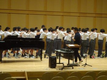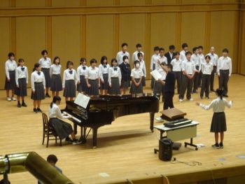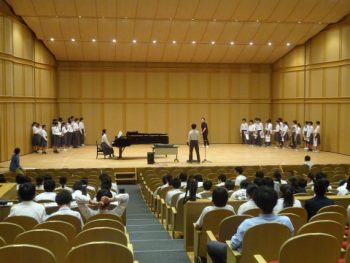 ウォーミングアップを兼ねて声の出し方の指導、各学級の合唱の指導をしていただき、これまでの合唱と比べ、明らかに上手な合唱に成長しました。