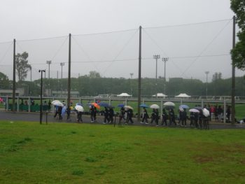 あいにくの雨模様でしたが、選手たちは、自ら走るコースを確認し、イメージをつくり、気持ちを高めていました。
