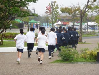 10月26日(日) 今月30日(木)に行われる中体連三泗駅伝に向けて、中央緑地公園で試走を行いました。