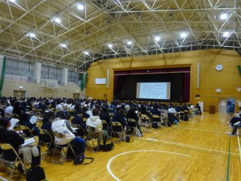 3年生の生徒・保護者を対象に、体育館にて第2回進路説明会を行いました。
