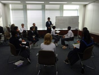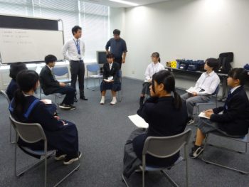 中学校は2つのグループにわかれて、アイスブレーク後、身近な「人権」について語り合いました。