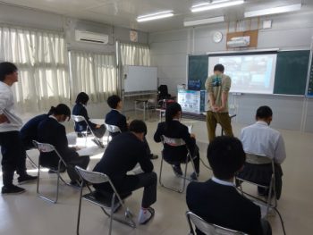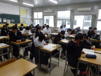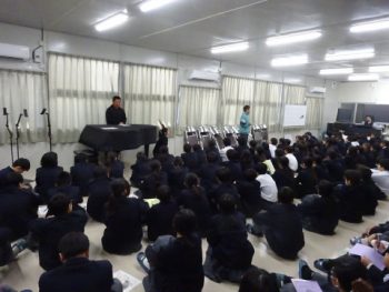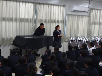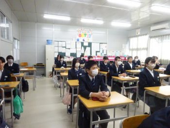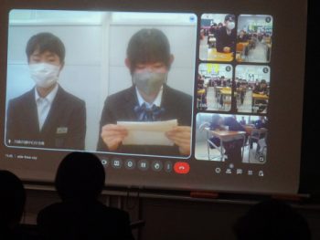 明日の2学期終業式を前に、2・3年生はオンラインで、1年生は音楽室に集まり、各学年で2学期最後の学年集会を行いました。