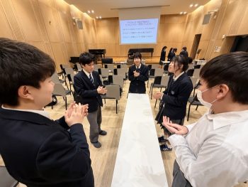 国道1号線の渋滞で出発はおくれましたが、現地では、学長からのあいさつを受けた後、広大なキャンパス見学、教員志望の大学生による授業体験、学食体験等を行いました。とても貴重な体験で、これからの自らの「学び」(学校だけでなく社会教育もふくめた)について考える機会となりました。