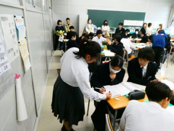 5限目、授業参観を行いました。多数の保護者の方に来校いただき、学校や生徒の様子を参観していただきました。なお、3年生については、修学旅行・進路説明会を体育館にて行いました。