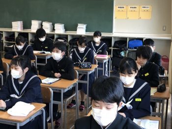 新型コロナウイルス感染拡大防止のために、生徒全員がマスクをして学活に臨んでいます。