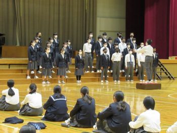 保護者の皆さまに見守られながら、少し緊張した面持ちでしたが、体育館いっぱいに美しいハーモニーを響かせました。