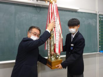 終業式の前に、表彰伝達をオンラインで行いました。数多くの表彰があり、これまでの川中みんなのがんばりが伝わってきました。表彰者のがんばりはもちろんですが、一緒にがんばった生徒、応援をがんばった生徒、川中全員のがんばりが、この結果につながっていると思っています。これからも、川中みんなで、盛り上げていきましょう。