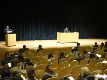 令和8年度に向けて、新しく川越中学校の生徒となるご家庭の保護者の方を対象に、新入生保護者説明会をあいあいホールにて行いました。