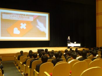 ヘルプマークの普及活動を行っている田中麻莉絵さん(HERITAGE所属)を講師に迎え、1年生を対象にあいあいホールにてお話を聴きました。田中さんの生きてきた歩みの中で、大切にしてきたこと・ものがよくわかり、今もなお、自分にできることを一生懸命取り組んでいることが伝わってきました。社会には、いろいろな人がいる中で、見た目だけにとらわれず、自分がどのように行動すればよいか考える機会となりました。
