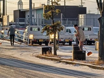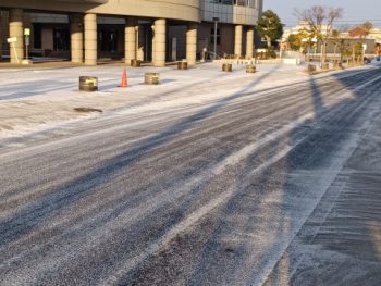雪は前回より少ないですが、場所によっては凍結しているおそれがあります。また、高速道路がとまっているため、国道1号線を中心に渋滞が発生しています。その関係で、近辺の道路も交通量が増えているので、登校時には、凍結や自動車に十分注意して、登校しましょう。特に自転車通学の生徒は、十分に注意しましょう。