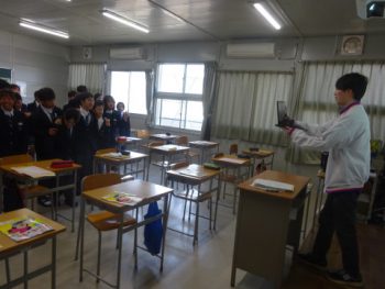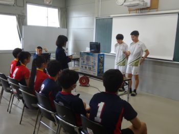 生徒会による対面式・部活動紹介を行いました。時間の都合上、オンラインでの実施でしたが、1年生から3年生まで、1学級ずつ、担任による簡単な言葉と、元気な姿を画面に映していきました。これからの学校生活で、少しずつ、みんなが「関わり」がもて、関係が深まっていくことでしょう。部活動の紹介はキャプテン・部長を中心に説明があり、1年生は、これからの活動を楽しみに聴いていました。