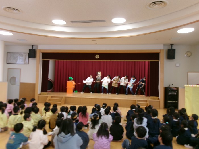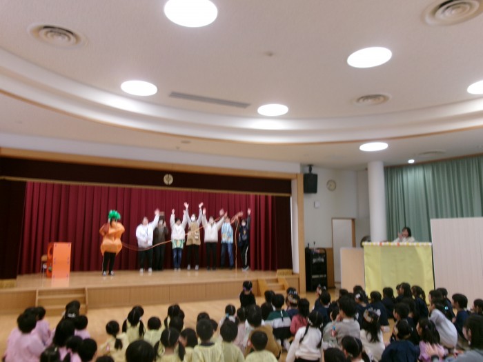 今日のお楽しみ会は、「おおきなかぶ:にんじんバージョン」の劇でした。