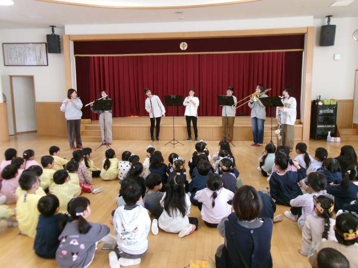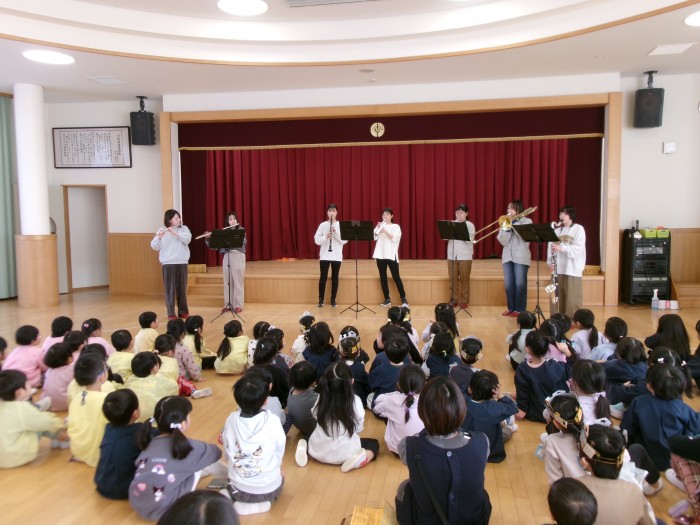 なんと!! 今月は、ももこ先生率いる“サンセリテアンサンブル”に来園していただき、楽器を演奏してもらいました🎺✨