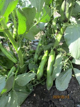 そら豆とスナックエンドウも、小さなポットで種から育て、大きくなったところで畑に植えました。
