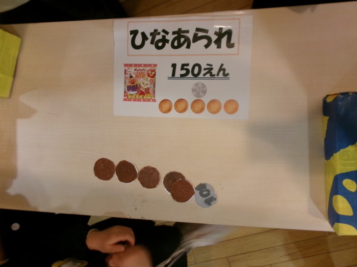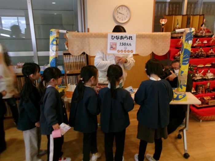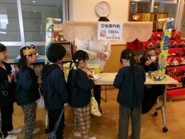 年長組は自分で作ったお金を持って、特設のお店屋さんに「ひなあられ」を買いに行きました🎎