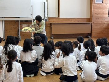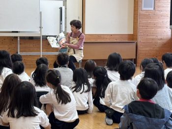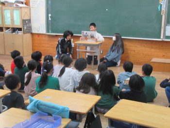 そして、今朝(11/13)の北小タイムには、図書委員の子どもたちが3年生、4年生の学級に出向き、紙芝居を行っていました。