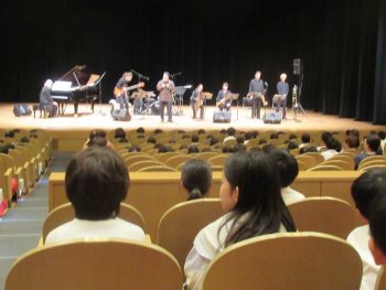 10月3日(金)、あいあいホールで、午前中の3,4限目に低学年が、そして、午後の5,6限目に高学年が、音楽鑑賞を楽しんできました。 サウンドジャグラー オーケストラのみなさんによるジャズコンサートでした。 NHKの朝のドラマの主題歌であった曲やトトロの曲など、私たちの生活の中でなじみのある曲も多く、子どもたちはジャズという音楽を体で感じ、楽しんでいました。 また、普段は味わえない楽器の音色を聴くことができたのもよかったと思いました。