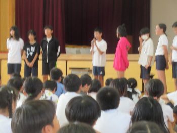 各委員長からは、どんな学校にしていきたいのか、それぞれの委員会の願いや仕事の内容、全校のなかまに協力してほしいことなどが伝えられました。