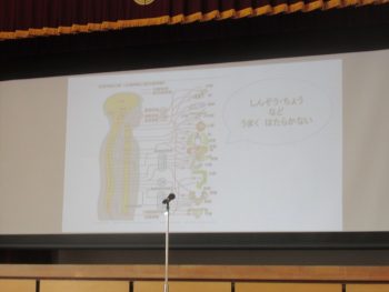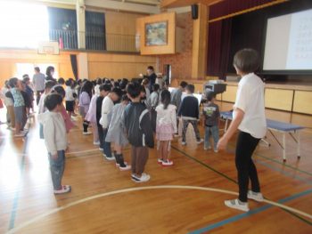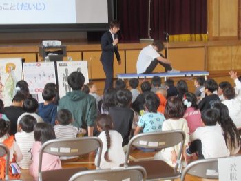 10月27日(月)5,6限目に子どもの未来を語る会を開催しました。 KCSセンターみえ川越から、姿勢調整師の方を講師にお招きし、1年生の子どもたちが「姿勢」について学びました。 姿勢は、健康に影響を及ぼすことはもちろん、身体を動かすことや頭を使うことなど、何をするにも大きな影響があり、姿勢が良くなることで、多くのことが改善することを教えていただきました。 目を閉じて、その場で30回足踏み、あれあれ、前に進んでしまっているぞ・・・これも立っているときの姿勢が関係しているそうです。 それから、背骨のS字カーブが、よい姿勢の保持に大切であることも学びました。 また、いすに座るとき、体育座りのときの良い姿勢とは、どのような姿勢なのかを教えていただきました。ポイントは腰!腰を立てるようにして、座ってみると・・・「いい姿勢とはそれそれ!」と講師の先生からも褒めてもらうことができました。