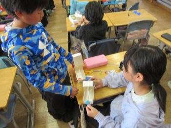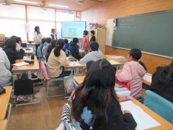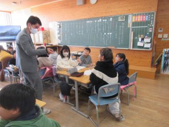 1月21日は、学校公開日でした。今回は、風の塔に、各学年の人権学習での学びを掲示しました。足を止めて、見てくださっている保護者、地域の皆様の姿を何度も見かけ、大変うれしく思いました。 また、6年生では、これまでの人権学習の発表を行いました。保護者、地域の方から感想をいただき、学びを深めることができました。 休み時間には、現在取り組んでいる大縄跳び「8の字跳び」を練習する学級もあり、保護者の方々もたくさん見守っていただいていました。 授業の様子です。こちらは、3年生 国語の授業、自分の意見に理由をつけて説明する学習をしていました。 2年生。図書室で学習している学級もあり、保護者の方から「初めて図書室に入った」という声を聞かせていただきました。 5年生。先日4年生に発表した「自然教室の報告」を互いに聞き合って、発表の工夫について振り返っていました。 4年生が、図工の学習をしているところです。「うまく作れない」と困っている子に、「こうしたら?」と手を貸していました。その後も素敵なやりとりをしていましたよ。 1年生のある学級は、保護者のみなさんの方を向いて歌を歌っていました。子どもたちのはにかみながらも、うれしそうな表情が素敵でした。 保護者、地域の方々にたくさん来校いただき、うれしく思いました。ありがとうございました。