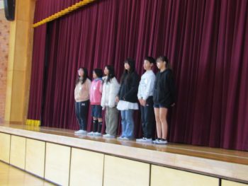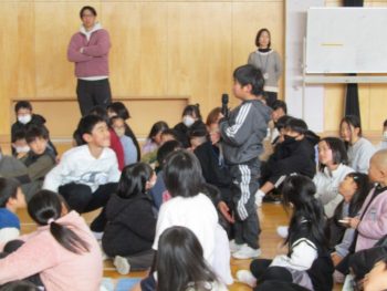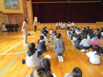 1年生と6年生が人権学習の交流を行いました。 まず1年生は、「だいじなわたし」という学びを6年生にむけて発表をしました。1年生がその学習の中で考えたジェンダーに関わる問い、例えば「ピンク色の水筒をもつことができるかどうか」などを、6年生にもなげかけ、1年生は、どのくらいの割合の人が“できる”と答えたのか等を伝えていました。 次に6年生からは、“きめつけ”について考える劇が発表されました。 そして、劇のあと、1年生に「今の劇、どう思った?」と問いかけ、“きめつけ”で判断するのではなく、立ち止まって事実を確かめること、その大切さを伝えていました。 1年生も6年生も互いの発表について感想を伝え合い、考え合っている姿も素敵でした。よい交流になりましたね。
