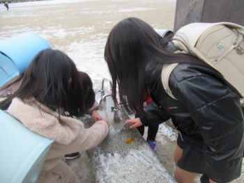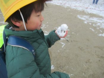 今日も寒い1日でしたね。朝からの雪の影響で、学校周辺の道路は渋滞していました。 しかし、雪の日の子どもたちは、ニッコニコで登校してきます。雪を丸く固めて手にもっている子が何人もいます。 そして、登校しても、なかなか教室には向かいません。雪が残っているところを探しては、雪を集めたり、走り回ったり・・・。 今日は、氷がはっているところをみつけて、「わあっ!!見て見て!!」と声をあげていました。 全部素敵な体験です。