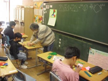 子どもたちが時間という抽象的な概念を具体的に理解するためや自分の生活に見通しをもつためにカレンダー作りを1年間取り組んできました。昨年までもカレンダー作りに取り組んでいることもあり、2年生より上の児童は手順がわかっており、安心して作業に取り組んでいる様子があります。はさみで線に沿って切ったり、のりを使って均等に貼ったりすることができます。自分の作業が終わるとまだできていない子のところに行って手伝ったり、やり方を優しく説明したりする姿もみられました。