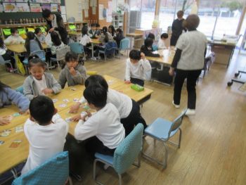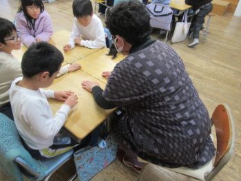民生委員のみなさんにも来ていただいて、1年生が生活科の学習で“むかしあそび”を楽しみました。 〇あやとり 〇コマまわし 〇かるた 〇おはじき 〇メンコ どうしたら上手くできるのだろうか・・・・頭をひねりながら、教えたり教えられたりして、繰り返し挑戦する姿が素敵でした。お忙しいところ、お手伝いいただきました民生委員の皆様、ありがとうございました。