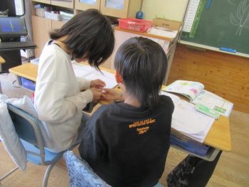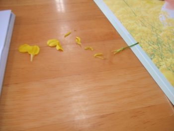 5年生がアブラナの観察をしていました。 花びらを一枚一枚とって、おしべやめしべまで、しっかりと見て確かめていました。 見慣れた花も、詳しく調べていくと新たな発見がいくつもあるものです。その面白さを感じて、自分で学びを深めたり広げたりしていってくださいね。