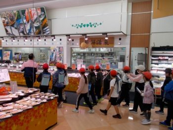 社会科の学習で「わたしたちのくらしとまちではたらく人びと」を学んでいます。11月10日(月)にスーパーサンシ川越インター店へ行きました。売り場の様子はもちろん、普段見ることができないバックヤードの様子も見せていただきました。配達のために商品を仕分けする様子や魚をさばいて切り身にする様子、てんぷらやおにぎりを作りお弁当に詰める様子など、貴重な場面を見せていただきました。子どもたちもスーパーの裏側に興味津々で、実りある見学となりました。