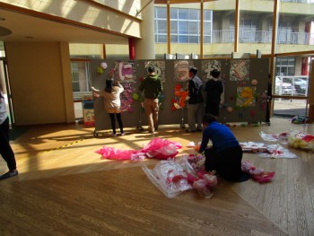 明日の土曜授業では、PTA総会を3限目に行います。今日は総会の為の会場準備を6年生の子どもたちがしてくれました。