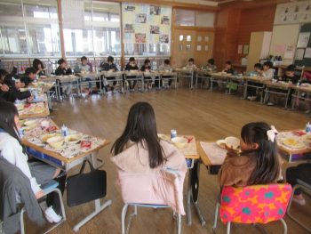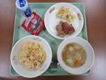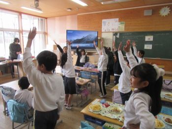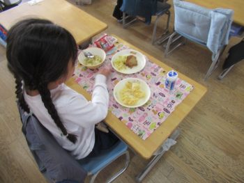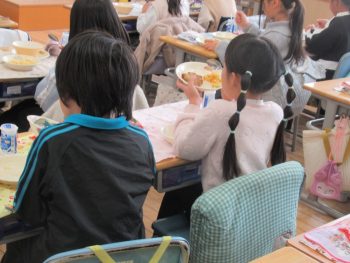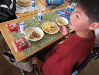 今日の給食のメニューは・・・ 「ジョア キャロットごはん もみの木バーグ 野菜ソテー 冬野菜のポトフ クリスマスデザート」 クリスマスが近く、放送委員会によるお昼の放送も「あわてんぼうのサンタクロース」などがかかっていました。 子どもたちは、どんな様子かな?と思い、各学年の教室をのぞくと、どの子もしずかに、そして、おいしそうに食べていました。 クリスマスデザートの「おかわりしたいひと⁉」 ジャンケンに、勝ったのかな? こんなクラスもありました。 今日で、2学期の給食はおわりです。給食センターのみなさま、美味しくって、暖(温)かくって、笑顔が広がる給食をいつもありがとうございました。