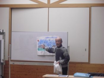 1月29日(木)に地域にお住いの寺本さんに来ていただき、伊勢湾台風のお話をしていただきました。台風の時期ではないのですが社会科で昔の暮らしについて学習をする中で、川越町にとって大きな出来事である伊勢湾台風について学ぶ良い機会としました。