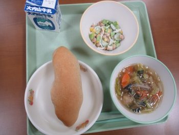 2月3日は、節分。給食の献立には、炒った大豆が入っているかな・・・・? 給食には、「豆まめサラダ」という献立で大豆が入っていました。栄養教諭に聞いたところ、炒った豆は、乾燥していて誤嚥の危険が高まるからだそうです。安全にとても気を配っていただいている給食の献立に、本当に感謝です。