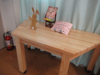 なお、図書室は12月末(冬休み中)に、古いテーブルと書架の1つを、木製の新しいものと交換していただきました。みえ森と緑の県民税が活用されています。 いろいろな方に子どもたちの学習環境整備を進めていただいています。本当に感謝です。あたらしいテーブルの上に置かれた「どうぞの椅子」が下の写真。鬼の出てくる本だけでなく、どうぞの椅子にのっている本にも、子どもたちは興味津々。「校長先生、これ何?」と表紙をみて話しかけてきていました。