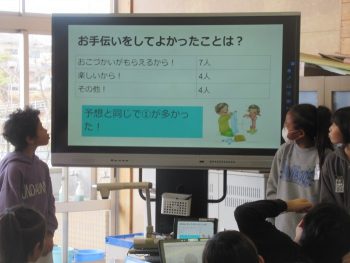 4年生が国語科「調べたことを伝えよう」の学習をしていました。 グループごとに、生活をよりよくするために、実態を調査をして、その結果から考えたことを発表していました。 テーマは、睡眠や学習時間、お手伝いなど、生活時間の使い方に関するものでした。 調べた結果を円グラフや棒グラフにしてわかりやすく示し、予想と比べてどうだったかを伝えているところに、それぞれの頑張りを感じました。また、発表を聞いて考えや思いをもち、それを伝えようとする姿が素敵だと思いました。 私(校長)も、皆さんの生活ぶりについて、新しい発見がありました。4年生、よい取り組みになりましたね。