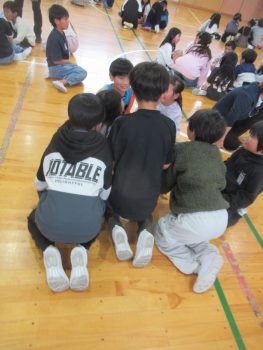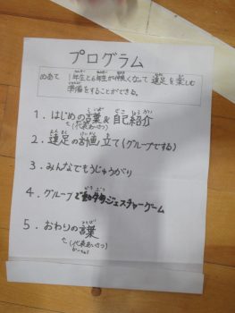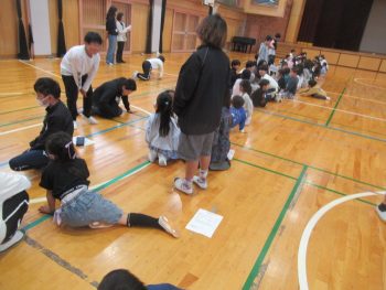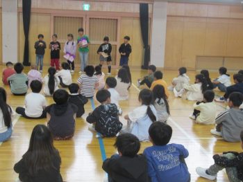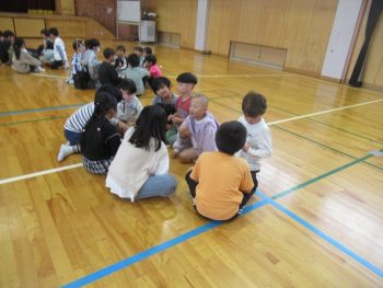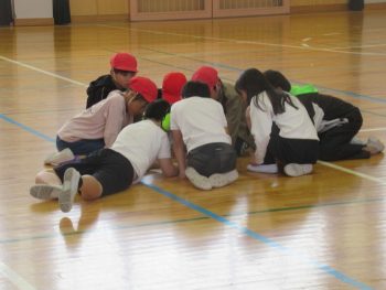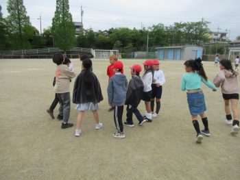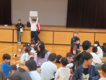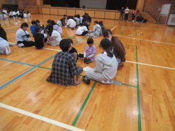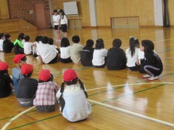 4月28日の遠足は、きょうだい学年で一緒に行きます。そこで、きょうだい学年で集会をもち、遠足で気を付けることを確認したり、きょうだい班をつくり、その中で自己紹介をし合ったりしました。 3年1組と5年1組 3年生は、学級ごとに集会がもたれていました。終わりの方では、よりなかよくなるために、あそびを一緒に楽しんでいました。3年2組と5年2組は、鬼ごっこ?!