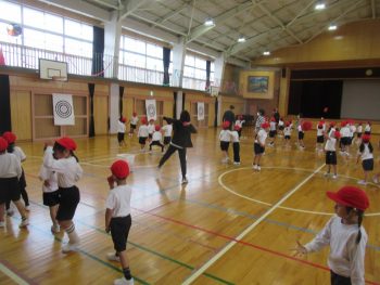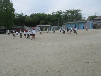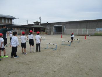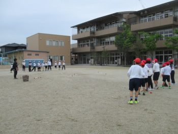 4年生が体育で「走る」「跳ぶ」「投げる」の力を伸ばす運動に取り組んでいました。 「走る」 「跳ぶ」 いずれも、チーム戦で子どもたちは楽しそう。思わず一生懸命体を動かしてしまう、そんな工夫を感じました。また、学年体育で取り組んでいるので、子どもたちは、1組から3組の先生、すべてとかかわりをもちます。こちらは「投げる」の運動です。 運動好きの子どもの育成に教員もチームとなって取り組んでまいります。こちらは、1年生体育の様子です。 「投げる」ための体のつかい方を「まとあて」で学んでいました。1年生も頑張っていました!!