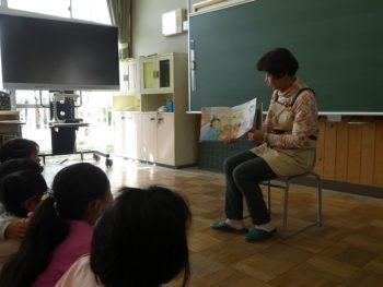 昨日(11月6日)の2限目のあとの休み時間に、ピーターパンさんによる読み聞かせがありました。楽しいお話で思わず笑顔になりました。おすしが流れてくるレーンにのって不思議な魚の国に行き、おすしのごちそうを食べていたら、海坊主が出てきてわさびでやっつけるお話や、「たね」がいろんな動物に運ばれ、最後はぞうのフンであたためられ芽を出すお話、パンでいろんなものがサンドされるお話、「しょうゆ」がきっといつもゆうしょうするお話など、どれもとてもたのしかったです。次回は12月4日(木)に来ていただく予定です。いつもありがとうございます。
