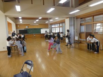 2年生は、生活科で作った楽しい「遊び」を1年生を招待して行いました。今日は2年B組の子どもたちが1年B組の子たちを招待して「くじびき」や「わなげ」「モグラたたき」などの遊びを楽しんでもらっていました。どの遊びも、2年生の子どもたちがルールをきちんと説明していました。水曜日は2年A組の子どもたちが1年A組の子どもたちを招待して「遊びのくに」を開く予定です。