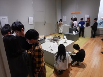 今日の午前中に3年生の子どもたちが、電車に乗って、四日市市立博物館の「昔のくらし展」(社会見学)に行きました。昭和のお店やお部屋、道具などもたくさん展示されていました。昭和の大衆食堂のうどんやそばの値段が、今では考えられないくらい安い値段で表示されているのを見て、びっくりしていた子もいました。物価がどんどん上がっていることも学びました。黒電話のダイヤルを見て、「どうやってするの?」と、そばにいた語り部さんに尋ねる子もいました。子どもたちは学んだことを学校にもどってから、社会科の時間を中心に新聞にまとめる予定です。