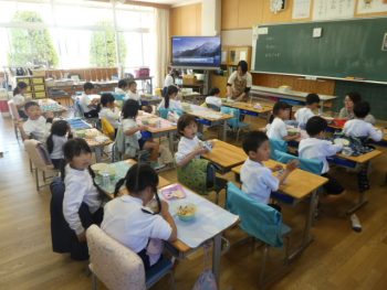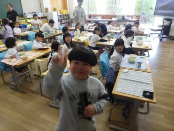 今週月曜日から始まった1年生の(小学校での)給食。今日のメニューは「まこもたけとめかぶのスープ」と「ビビンバ」「牛乳」でした。まだ食べる量が少ない子もいますが、これから体育館や運動場での活動も増えます。また、勉強時間に頭をつかってがんばる時間も増えます。そうすると自然におなかが減り、給食で食べる量も自ずと増えていきます。1年生のみなさんは、今は小学校での新しい生活リズムづくりでとても大変だと思いますが、おうちではしっかりと体を休めてあげて下さい。そして、元気で学校生活が送れるよう、おうちの人とともに我々教員もしっかりサポートしていきたいと思います。