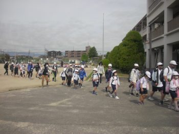 1年生と6年生は川越緑地公園に行きました。6年生がブランコを押してあげたり、「だるまさんが転んだ」の遊びを教えてあげたりして、すごく楽しそうでした。