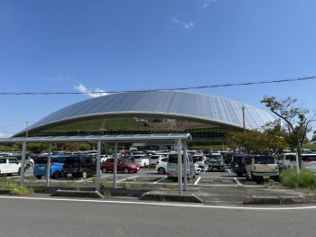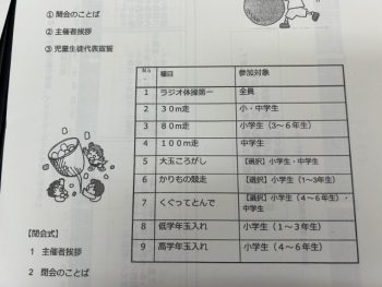 今日の午前、三泗小・中学校連合運動会が、四日市ドームで開催されました。本校から出場した子どもたちも「30m走」「80m走」「くぐってとんで」「かりもの競争」「大玉ころがし」「玉入れ」にエントリーし、元気に競技に参加しました。みんなほんとうによくがんばりました!保護者の方々にも送迎の協力や応援をいただき、ありがとうございました。また、中学生の子どもたちが、小学生の子どもたちのために係を引き受け頑張る姿もとても頼もしいな、と思いました。(写真は会場となった四日市ドームと今日のプログラムです)