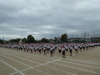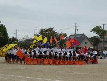 週間予報では、あまり思わしくなかった土曜日のお天気、大変心配でした。しかし、本日、土曜日、少し霧雨が降る場面もありましたが、おおむね曇り空の中、(時折さわやかな風が吹く気候の中、)令和7年度の運動会が開催されました。朝、子どもたちから「昨日なかなか寝れなかった」とか「ドキドキしていつもより早起きした!」という声が聞かれました。たくさんの子が、いい緊張感をもって運動会の朝を迎えたんだな、と思いました。それぞれの表現種目については、また学校だよりでお伝えしますが、どの演技もとても素敵でした。全校で取り組む応援合戦や大玉送りもとても白熱しました。練習では白組が一度も勝てなかったのに、当日はまさか白組が逆転勝ちをおさめるとは、とても驚きました。どの子もどの種目も本当によく頑張りました。お越しいただいた来賓・保護者・地域の皆様、応援ありがとうございました。(写真は開会式と高学年の表現種目の様子です)