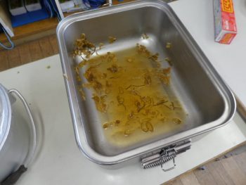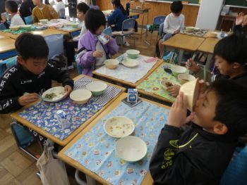 昨日の給食のメニューは「ごはん」「鶏のからあげねぎソース」「ごまゆかりあえ」「青菜と大根のみそ汁」「牛乳」でした。教室の子どもたちの声を聞くと、やはり「からあげ」は、たくさんの子が「好き!」と言っていました。今回の「からあげ」にはネギのおいしいソースがかかっていました。「おいしいー!」と言って食べていた子が多い中、ネギが苦手でネギだけ取り除く子もいました。「このネギなら食べれる!」という子もいました。からあげ大人気です!