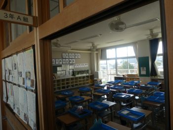 インフルエンザの流行が11月からニュースなどでもとりあげられていますが、今週になって、本校においてもインフルエンザでお休みする児童の割合が高くなっています。昨日は、3Aで8名、3Bで9名の児童がインフルエンザや発熱等で欠席し、今日から2日間、学年閉鎖となりました。(写真は、子どもたちが登校していない寂しげな3年生の靴箱と教室の様子)