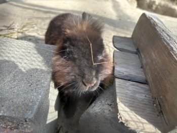 川越南小学校の飼育小屋では、1ぴきのうさぎさんを飼っています。名前は「クロちゃん」。飼育委員さんが、毎朝飼育小屋の掃除をしたりエサをあげたりしてくれています。飼育小屋の奥には大きなイチョウの木があります。この時期の黄色に染まった葉はとてもきれいです。